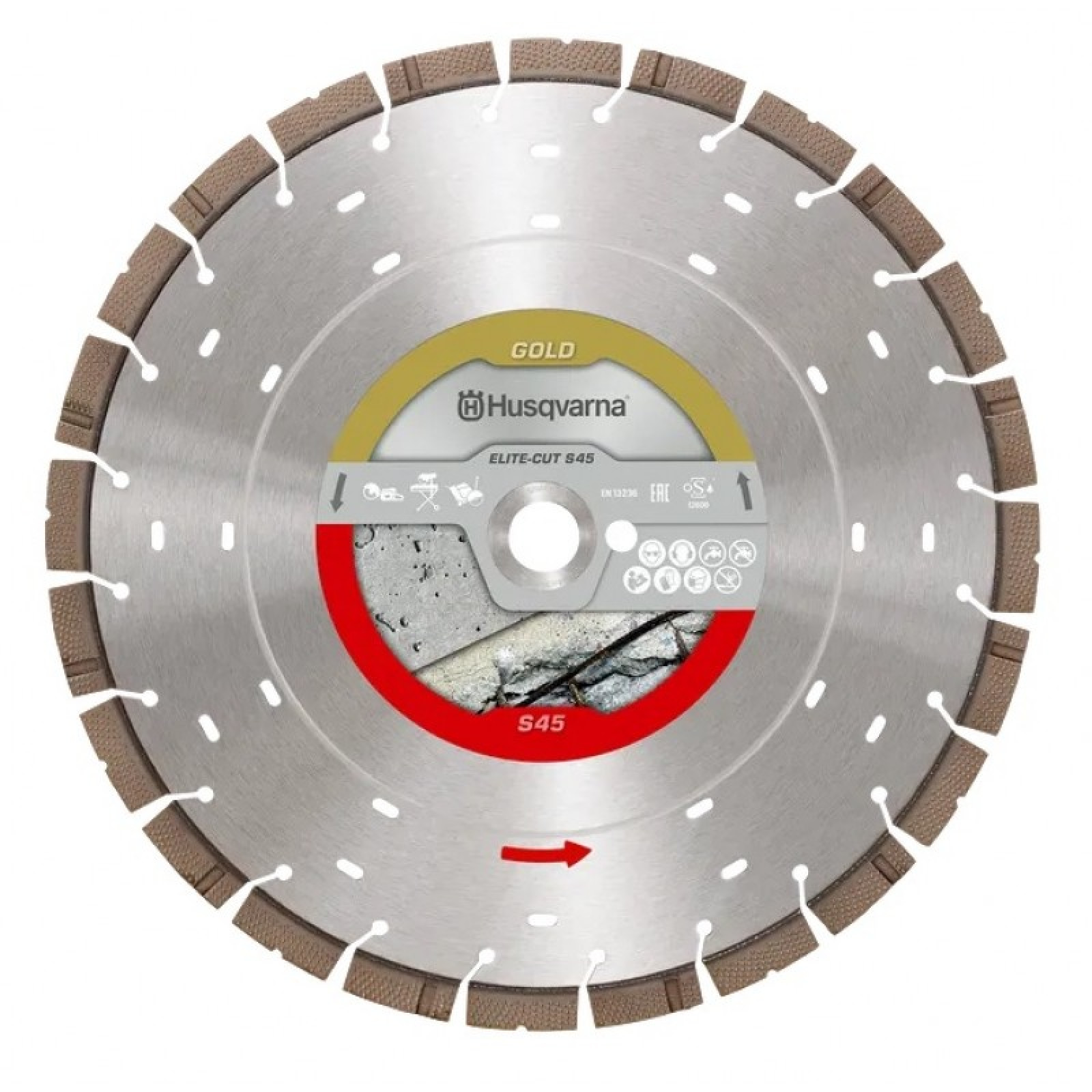 Алмазный Диск Husqvarna ELITE-CUT S45 EXO-GRIT™ 20"/500 мм - это инструмент для быстрой и бесшумной резки твердых строительных материалов.