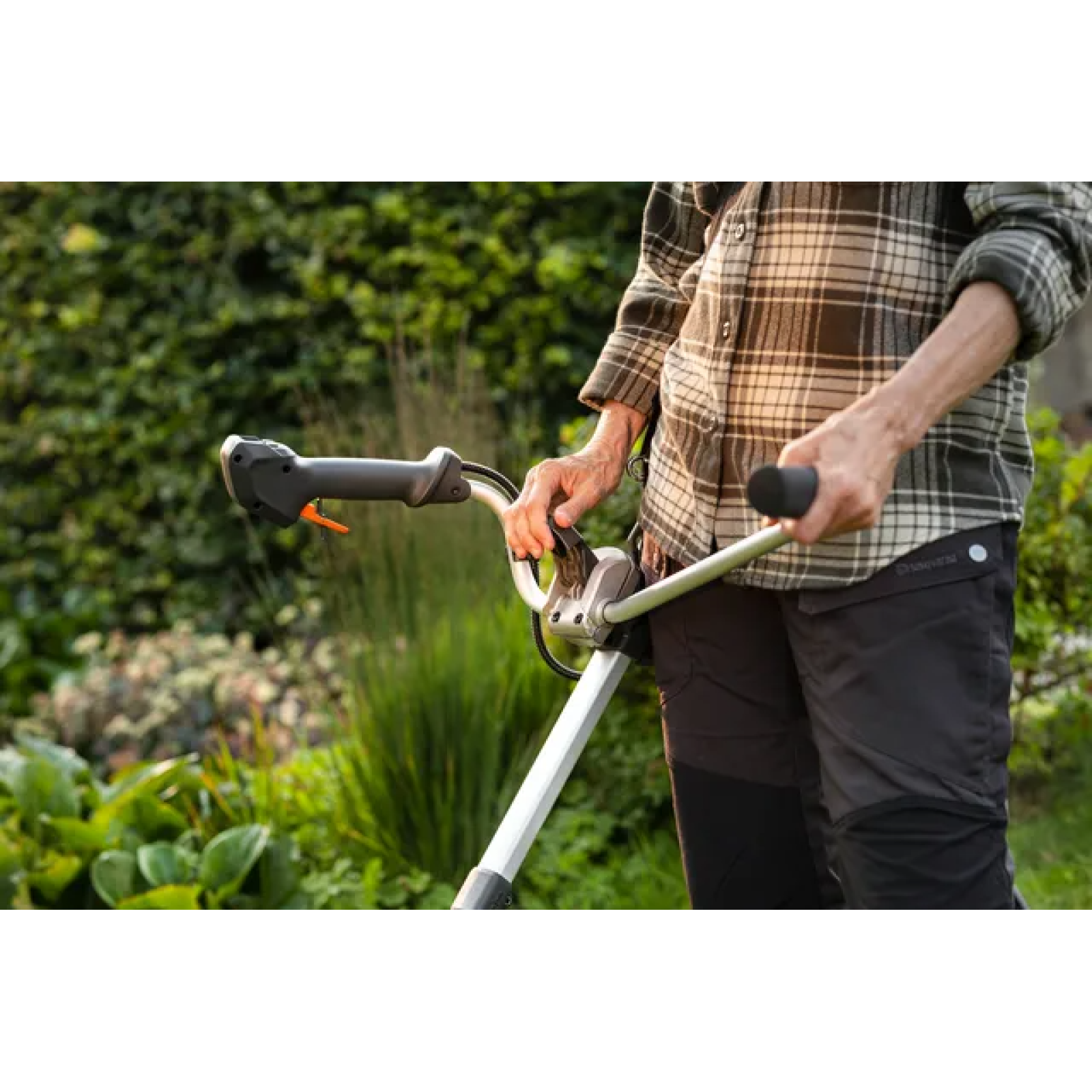 В наборе предусмотрена триммерная головка R25B для быстрого и аккуратного скашивания травы, а также насадка Tri-Cut B с пластиковыми ножами, предназначенная для более сложных задач, например, удаление густых зарослей. Для удобства перевозки и хранения конструкция дополнена выдвижным валом и складной ручкой, что делает инструмент более компактным. Модель работает в универсальной аккумуляторной системе Husqvarna BLi-X 36 В, которая позволяет использовать один аккумулятор с различными инструментами этой серии.
