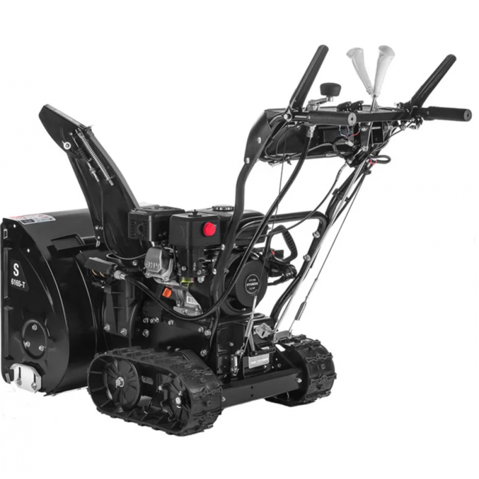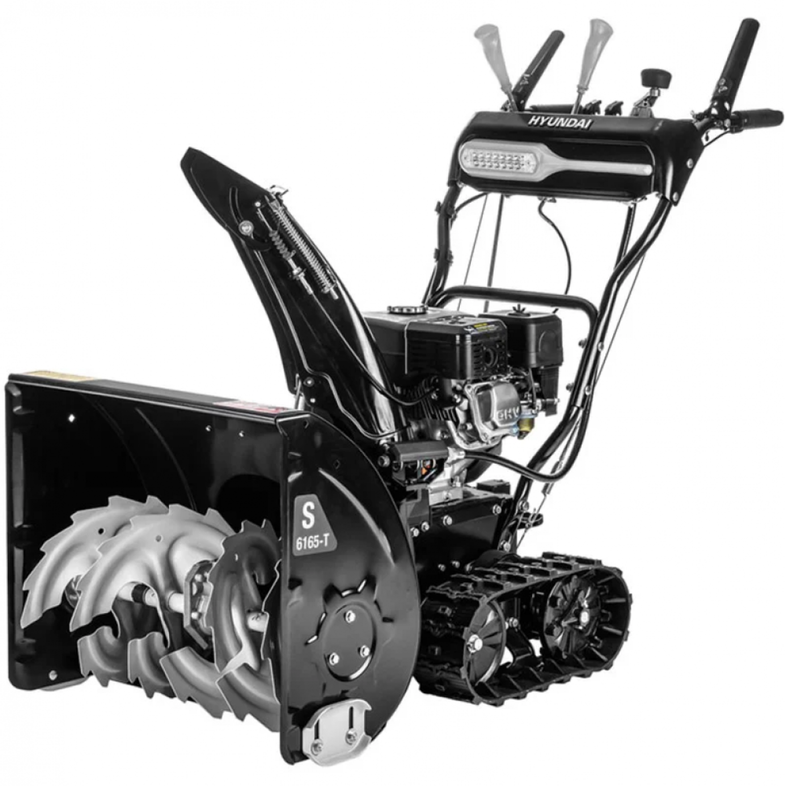 Снігоприбирач Hyundai S 6165-T оснащений фарою, що дає змогу працювати у темний час доби. Висока маневреність та хороша прохідність у складних погодних умовах забезпечуються гусеничним приводом, а двигун додатково захищений спеціальним кожухом. Конструкція включає міцну сталеву раму, надійний мотор, зручну систему керування, потужний бензиновий двигун, електростартер, двоступеневу систему очищення снігу, високу продуктивність та безпечну експлуатацію. Передбачено компактне зберігання, можливість регулювання швидкості руху та налаштування положення лиж ковша.